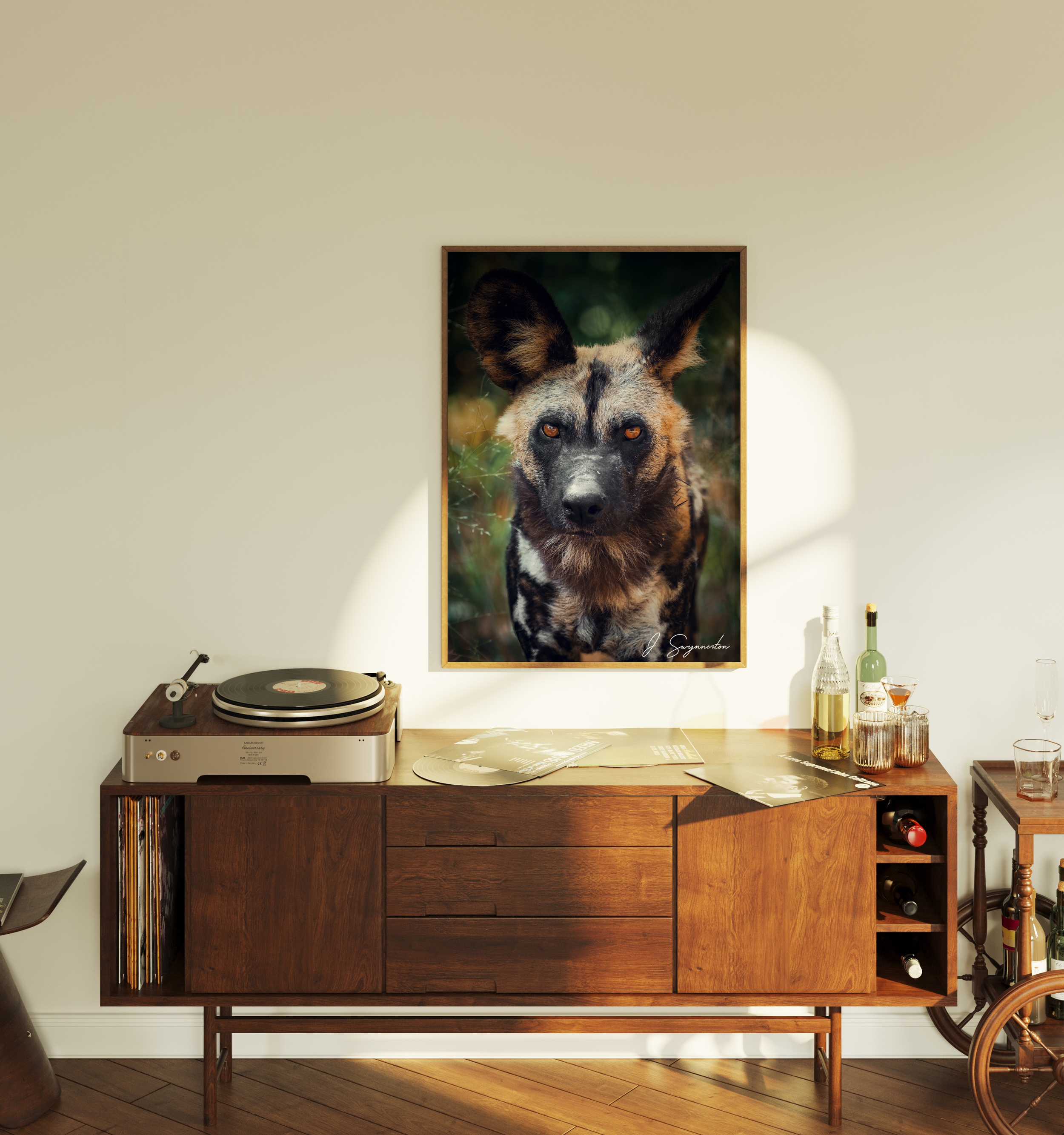 Printed on museum-quality matte paper, this poster offers a velvety, glare-free finish that allows every detail—from the individual hairs of the fur to the wet texture of the nose—to stand out with gallery-level clarity. It is a powerful, modern statement piece for any collector who appreciates the raw beauty of Africa's most specialized hunters.