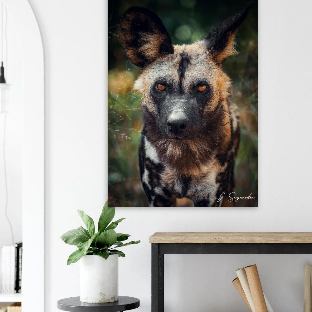 Bring the fierce and soulful spirit of the Okavango Delta into your home with this striking wildlife portrait.